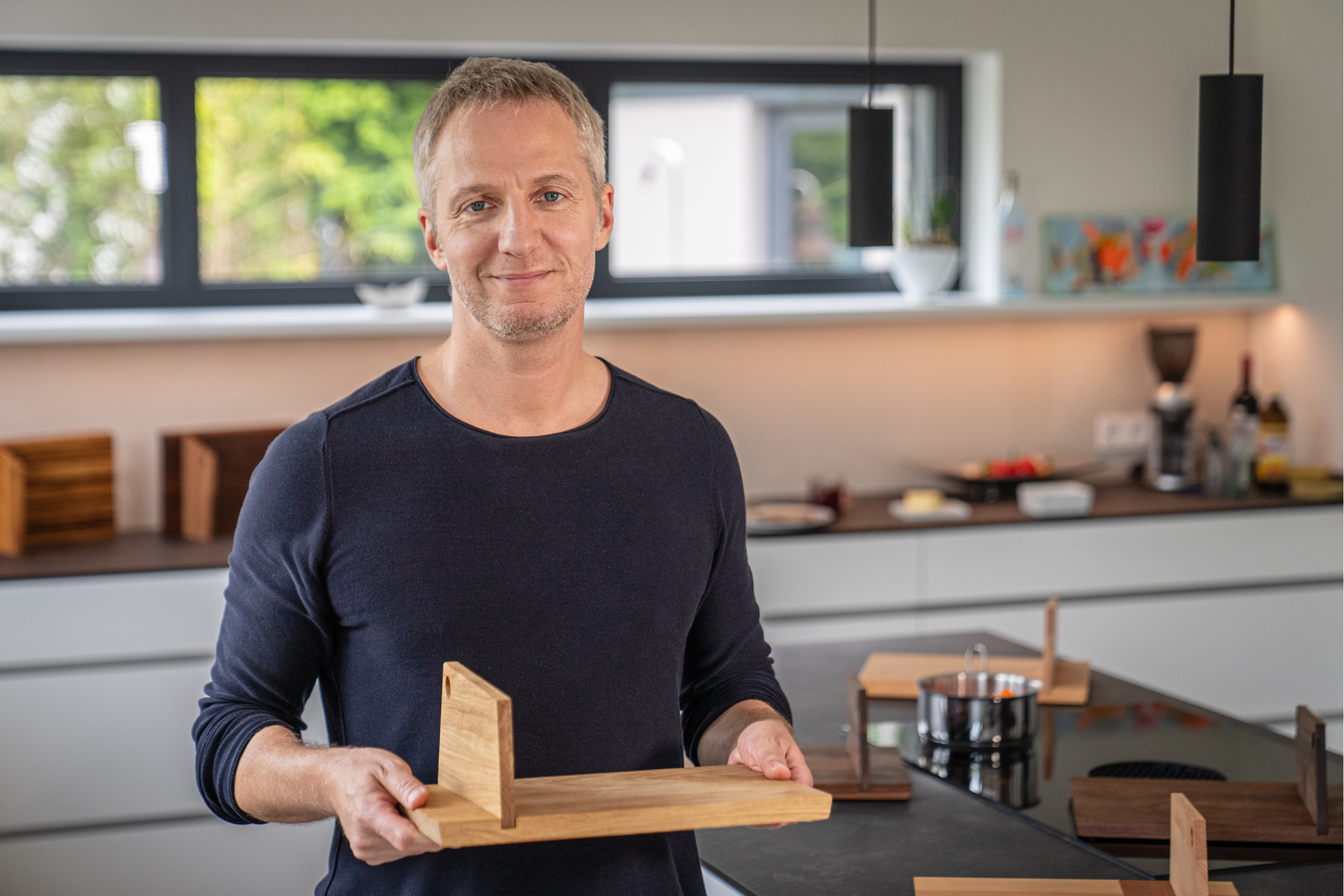 Mikrowelle, Wasserkocher, Toaster... Platz ist in der Küche oft Mangelware. So sieht es jedenfalls in der Küche des Erfinders aus. Das Mühlenbrett ist deshalb bewusst kompakt entworfen, damit es in jeder Küche und auf jedem Esstisch Platz findet. Zudem steht es durch seine besondere Form auch senkrecht und kann so schnell und einfach überall platzsparend abgestellt werden. So geht es elegant aus dem Weg und ist doch stets griffbereit. Zerlegt findet es auch in jeder Schublade Platz - aber sein Vorteil liegt gerade darin, es mit dem Messer immer griffbereit stehen zu haben. Wenn Du nicht sicher bist, ob es bei Dir zu Hause passt, kannst Du Dein Mühlenbrett bedenkenlos bis zu 21 Tage lang testen.