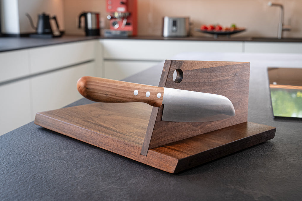 Erlebe die perfekte Symbiose aus Schneidebrett und Messer. Ein schneller Griff – ergonomisch und sicher. Zwei robuste Neodymmagnete halten Dein Messer genau dort, wo Du es brauchts – an Deinem Schneidebrett.