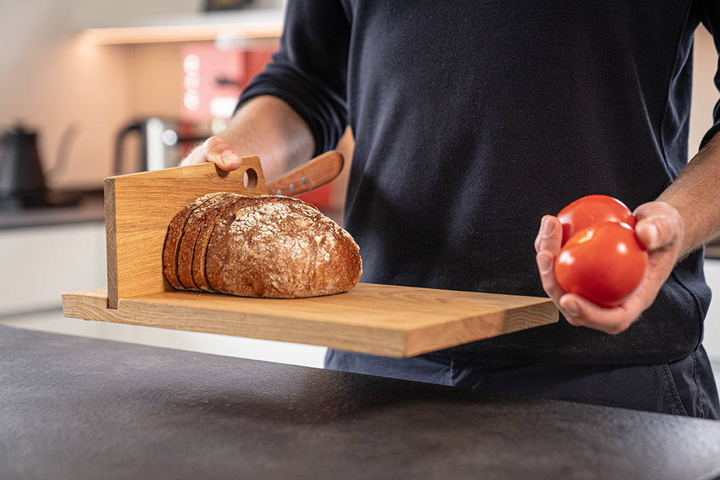 Mikrowelle, Wasserkocher, Toaster... Platz ist in der Küche oft Mangelware. So sieht es jedenfalls in der Küche des Erfinders aus. Das Mühlenbrett ist deshalb bewusst kompakt entworfen, damit es in jeder Küche und auf jedem Esstisch Platz findet. Zudem steht es durch seine besondere Form auch senkrecht und kann so schnell und einfach überall platzsparend abgestellt werden. So geht es elegant aus dem Weg und ist doch stets griffbereit. Zerlegt findet es auch in jeder Schublade Platz - aber sein Vorteil liegt gerade darin, es mit dem Messer immer griffbereit stehen zu haben. Wenn Du nicht sicher bist, ob es bei Dir zu Hause passt, kannst Du Dein Mühlenbrett bedenkenlos bis zu 21 Tage lang testen.