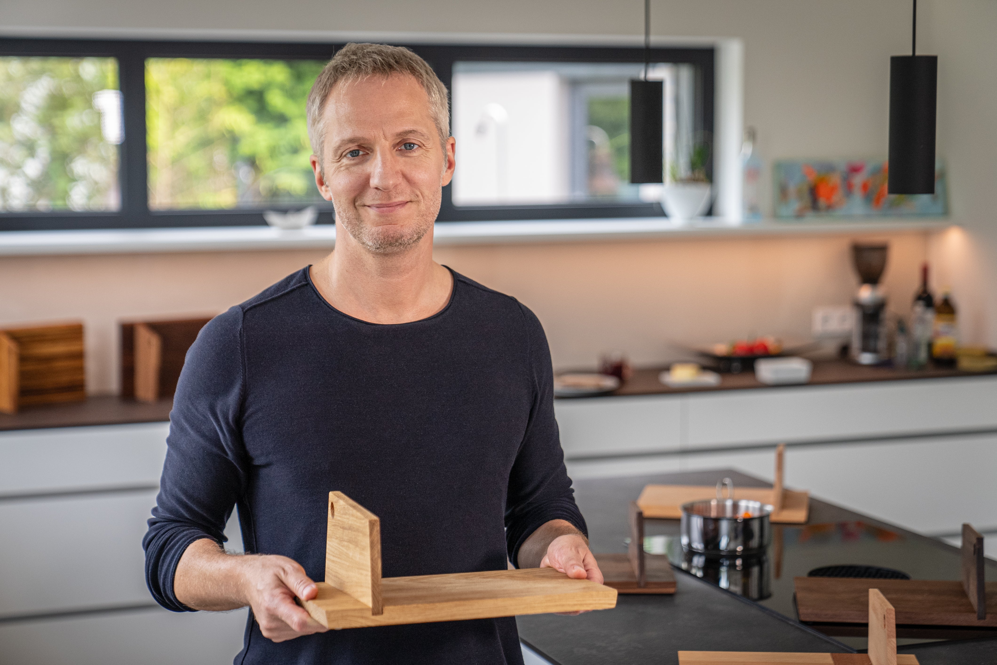 Mikrowelle, Wasserkocher, Toaster... Platz ist in der Küche oft Mangelware. So sieht es jedenfalls in der Küche des Erfinders aus. Das Mühlenbrett ist deshalb bewusst kompakt entworfen, damit es in jeder Küche und auf jedem Esstisch Platz findet. Zudem steht es durch seine besondere Form auch senkrecht und kann so schnell und einfach überall platzsparend abgestellt werden. So geht es elegant aus dem Weg und ist doch stets griffbereit. Zerlegt findet es auch in jeder Schublade Platz - aber sein Vorteil liegt gerade darin, es mit dem Messer immer griffbereit stehen zu haben. Wenn Du nicht sicher bist, ob es bei Dir zu Hause passt, kannst Du Dein Mühlenbrett bedenkenlos bis zu 21 Tage lang testen.